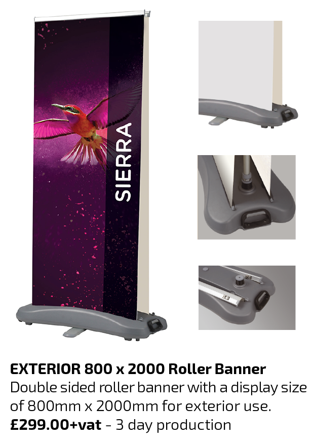 For outdoors use, please see the Exterior roller banner 800 x 2000.